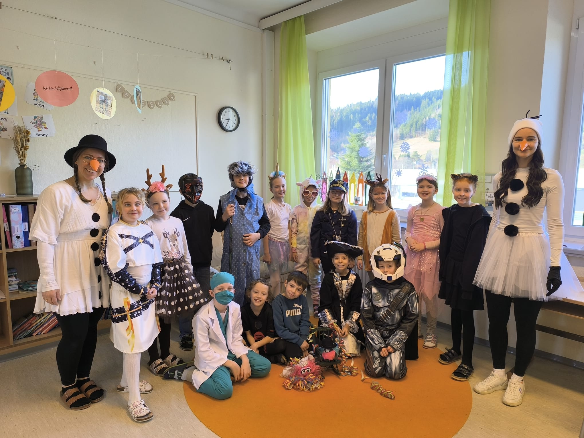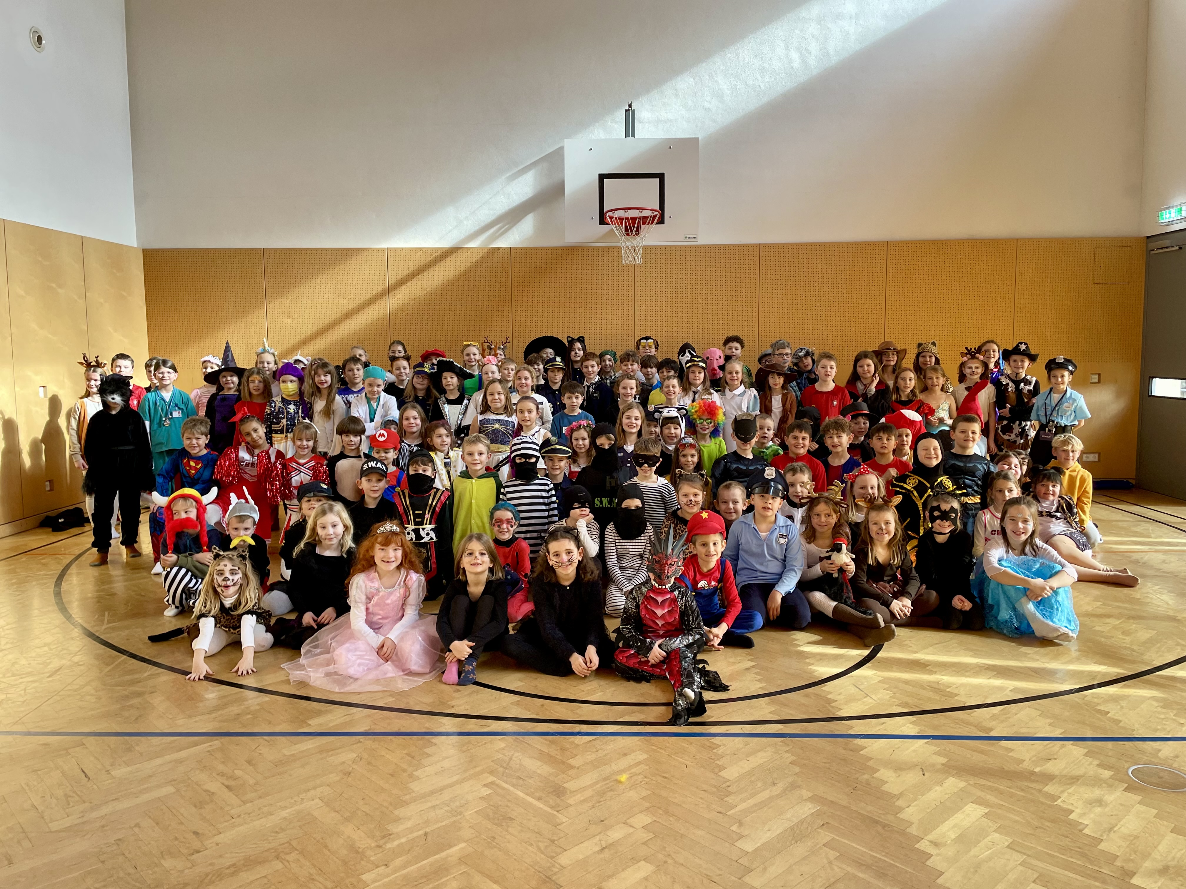 Beim diesjährigen Faschingsfest verwandelte sich unsere Schule in eine bunte Narrenwelt: Clowns, Superhelden, Tiere und viele andere lustige Masken sorgten für beste Stimmung in den Klassen und Gängen. Gemeinsam wurde getanzt, gelacht und gefeiert.